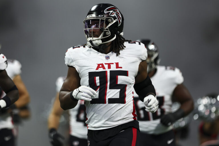 ATLANTA, GA – AUGUST 24: Ta’Quon Graham #95 of the Atlanta Falcons runs out of the tunnel prior to an NFL preseason football game against the Pittsburgh Steelers at Mercedes-Benz Stadium on August 24, 2023 in Atlanta, Georgia. (Photo by Kevin Sabitus/Getty Images) | Getty Images The Philadelphia Eagles re-signed