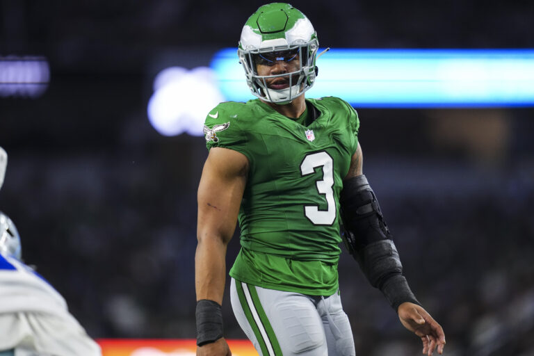 ARLINGTON, TX – NOVEMBER 23: Nolan Smith Jr. #3 of the Philadelphia Eagles lines up before the snap during an NFL football game against the Dallas Cowboys at AT&T Stadium on November 23, 2025 in Arlington, Texas. (Photo by Cooper Neill/Getty Images) | Getty Images Eagles Question of the Day: